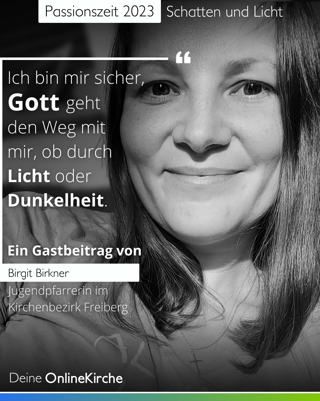 Ich bin mir sicher, Gott geht den Weg mit mir, ob durch Licht oder Dunkelheit. Er ist bei mir, ob in der Schwere oder der Leichtigkeit des Lebens. Sein Versprechen gilt. Unumstößlich.