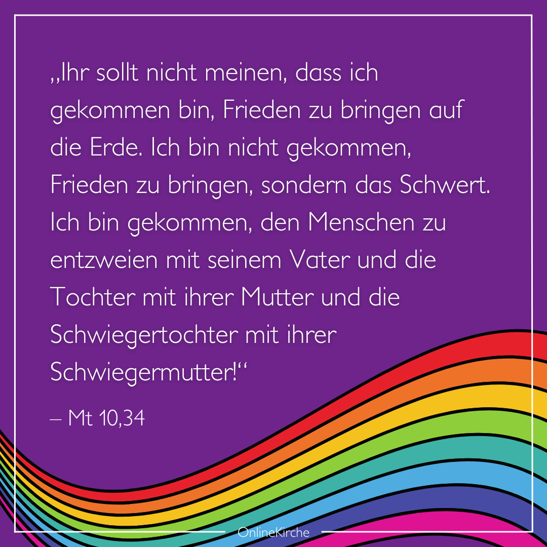 Jesus ist nicht gekommen, um Frieden zu bringen, Jesus IST der Frieden dieser Welt. Er erhebt nicht das Schwert (und auch wir sollen das nicht tun), aber er bringt es, weil die Welt nicht bereit ist für ihn und seine Botschaft der Liebe und Gleichheit.
